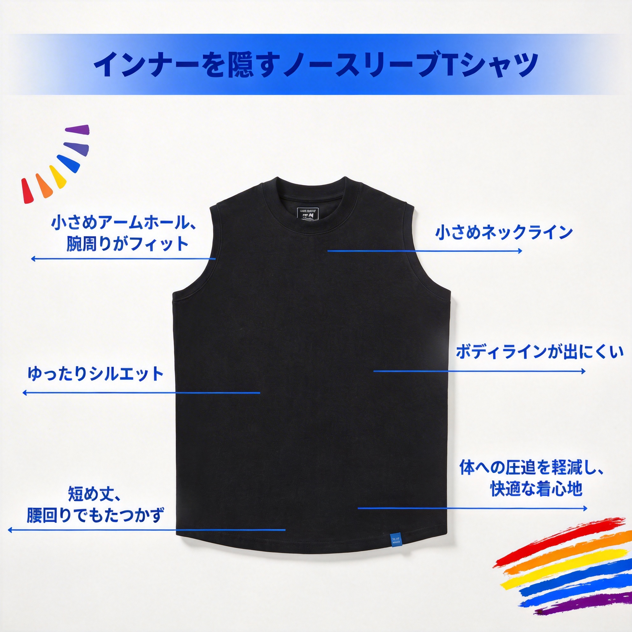 ✅【小さめネックライン&アームホール】WonababiノースリーブTシャツは小さめネックラインと程よいアームホールでインナーが見えないのでとても助かります。動いてもずれにくい安心設計。