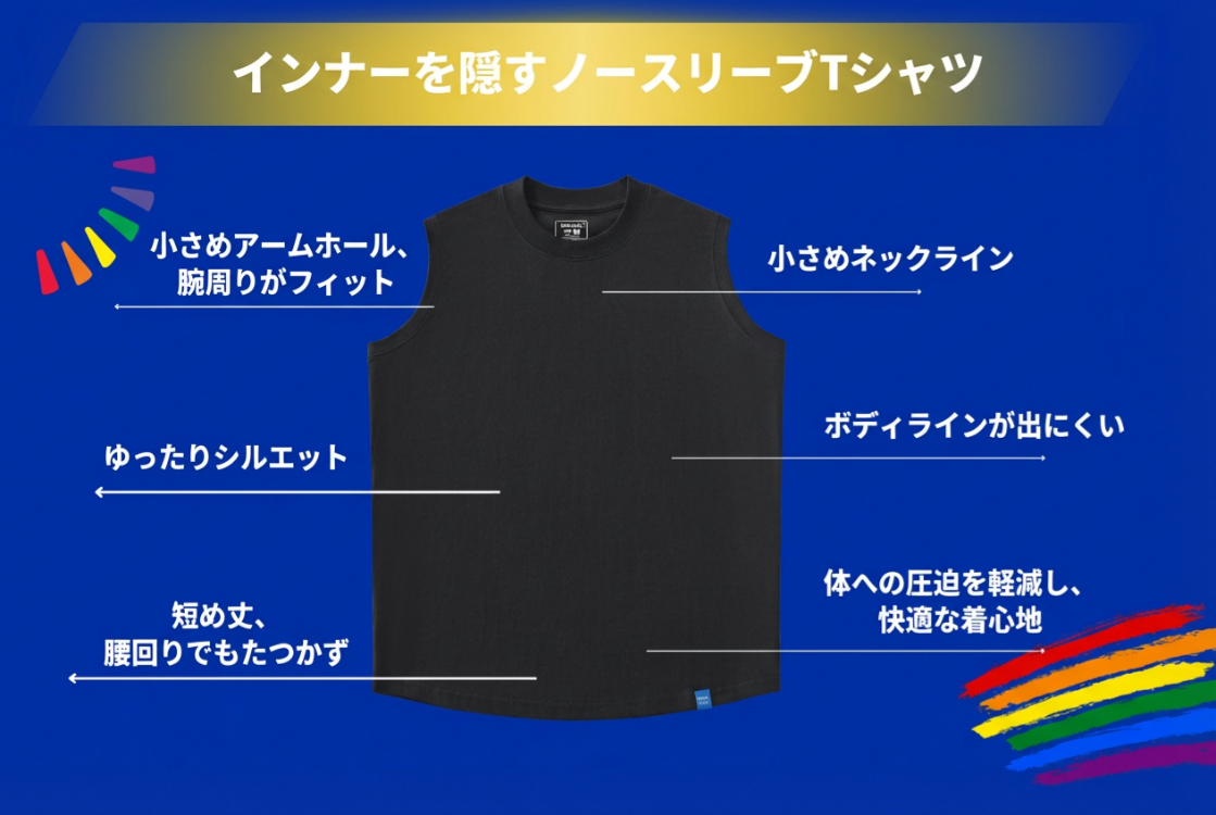 ✅【オリジナル自社パターン】ボーイッシュ・男装スタイルや幅広い体型に対応したインクルーシブ設計。ボディポジティブで誰でも自信を持って着られるTシャツ。
